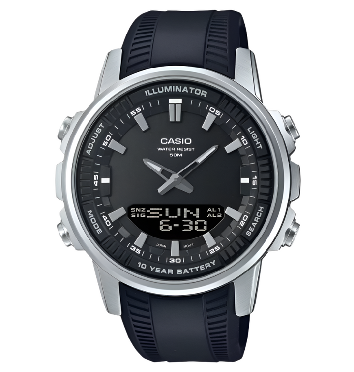 Regular timekeeping: Analog: 2 hands (hour, minute (hands move every 20 seconds)) Digital: Hour, minute, second, am/pm, month, date, day