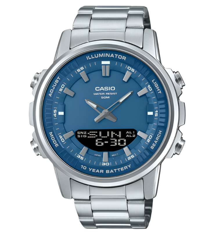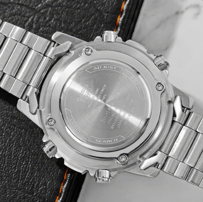 Regular timekeeping: Analog: 2 hands (hour, minute (hands move every 20 seconds)) Digital: Hour, minute, second, am/pm, month, date, day