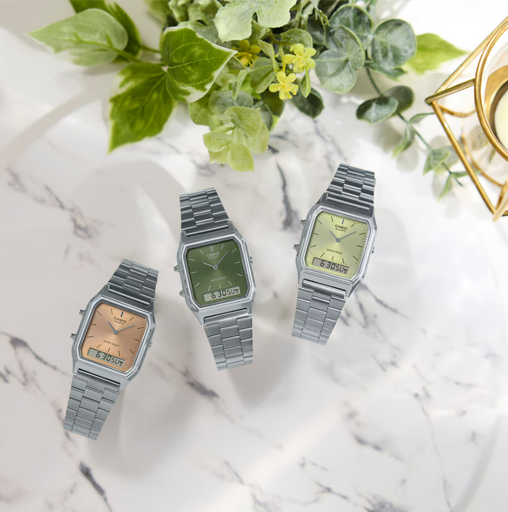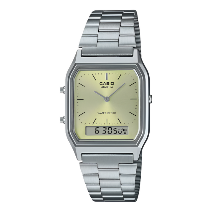 Classic watch functions: Analog: 2 hands (hour, minute) Digital: hours, minutes, seconds, p.m., month, date, day