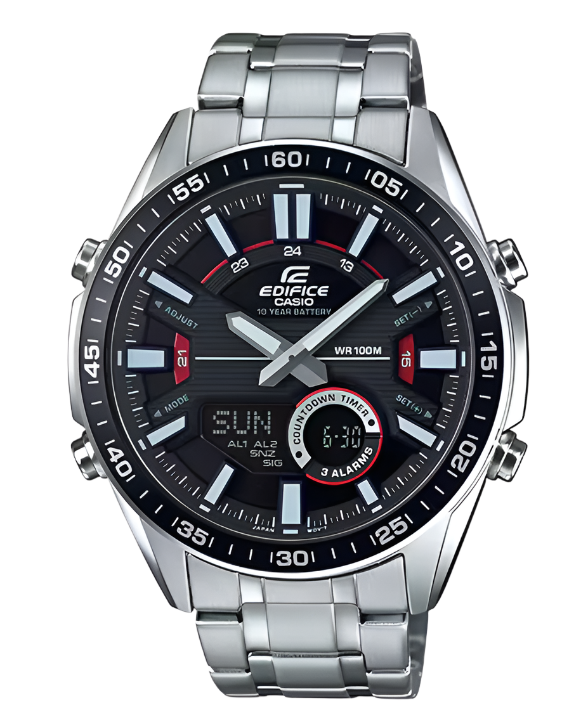 Regular timekeeping: Analog: 2 hands (hour, minute (hands move every 20 seconds)) Digital: Hour, minute, second, am/pm, month, date, day