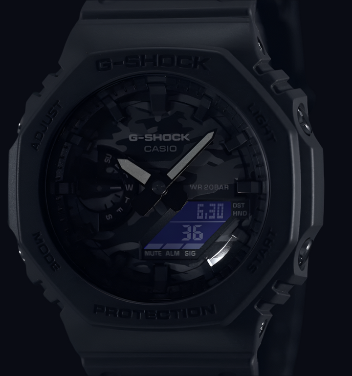 Double LED light LED light for the face (Super illuminator, selectable illumination duration (1.5 seconds or 3 seconds), afterglow) LED backlight for the digital display (Super illuminator, selectable illumination duration (1.5 seconds or 3 seconds), afterglow)