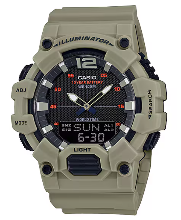 Regular timekeeping: Analog: 2 hands (hour, minute (hands move every 20 seconds)) Digital: Hour, minute, second, pm, month, date, day