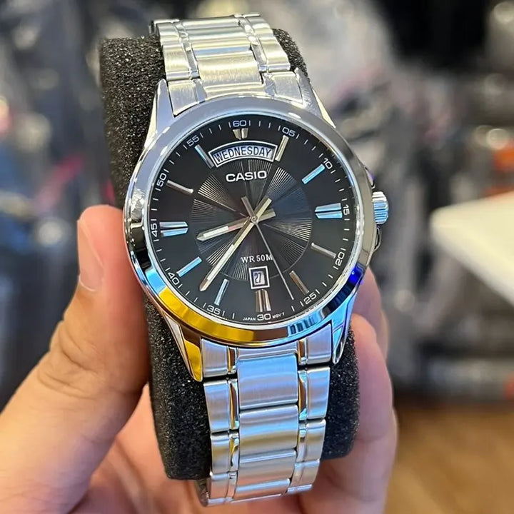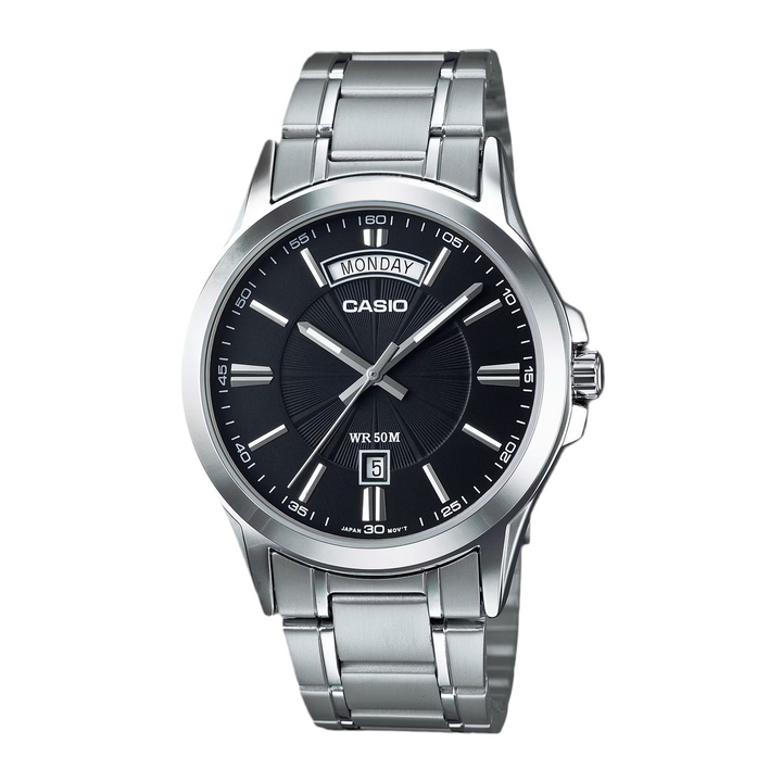 Regular timekeeping: Analog: 3 hands (hour, minute, second)Date displayDay of the week wide display
