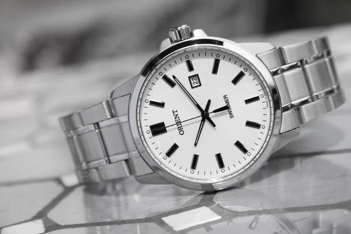 Product details of Orient SUNE5004W0 Quartz Swimmer Silver Dial Stainless Steel 100M Men's Watch